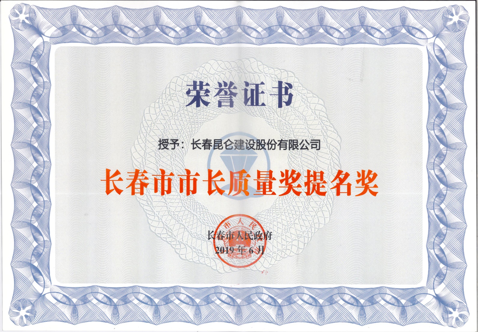 长春市市长质量奖提名奖