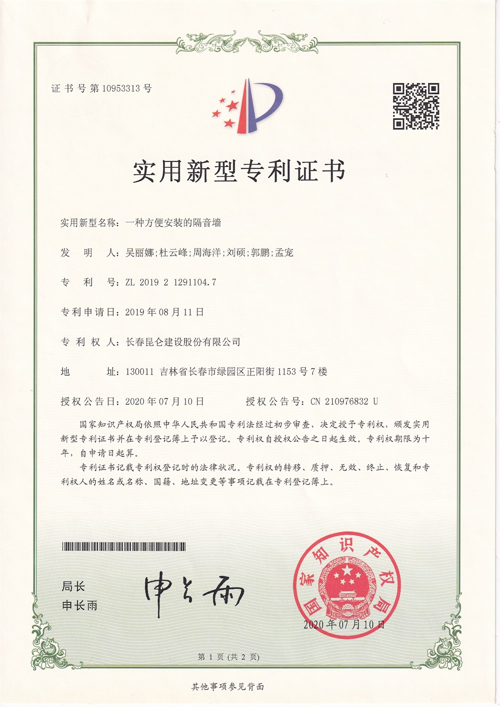 您当前的位置:首页 > 资质荣誉 > 专利证书 > 一种方便安装的隔音墙