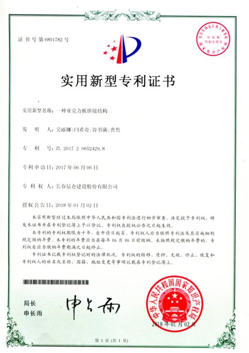 您当前的位置:首页 > 资质荣誉 > 专利证书 > 一种亚克力板拼接结构